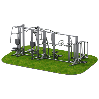 В состав уличного тренажёрного комплекса Sabirgym SGINVAR412 входит девять специализированных тренажёров, которые обеспечивают разнообразие тренировочных упражнений и позволяют задействовать различные группы мышц.