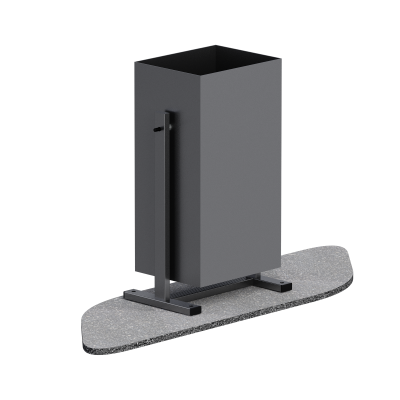 Торцы рамы и крепёжные элементы запаяны либо закрыты декоративными заглушками. Это не только повышает безопасность эксплуатации, исключая острые кромки, но и придаёт изделию аккуратный внешний вид. Конструкция предусматривает крепление к бетонной или асфальтовой площадке при помощи анкерных болтов, что обеспечивает стабильность и неподвижность урны даже при высокой нагрузке.