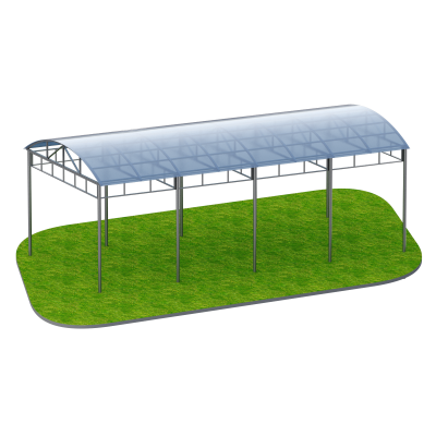 Крыша навеса выполнена из сотового поликарбоната толщиной 6 мм. Этот материал отличается высокой устойчивостью к атмосферным воздействиям, механическим нагрузкам и ультрафиолетовому излучению. Поликарбонат пропускает достаточное количество естественного света, создавая комфортную освещенность под навесом.