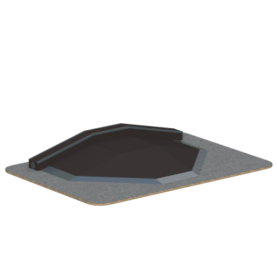 Габариты 4912×3368 мм создают просторную рабочую зону и позволяют использовать элемент как центральную фигуру скейт-площадки в сочетании с другими модулями.