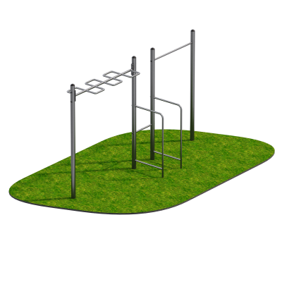 Комплекс объединяет турник, брусья и рукоход, позволяя выполнять широкий спектр упражнений на развитие силы, выносливости и координации. Турник используется для подтягиваний различными хватами, развивая широчайшие мышцы спины, грудные мышцы, бицепсы и трицепсы. Брусья позволяют выполнять отжимания и статические элементы, укрепляя мышцы плечевого пояса и груди.